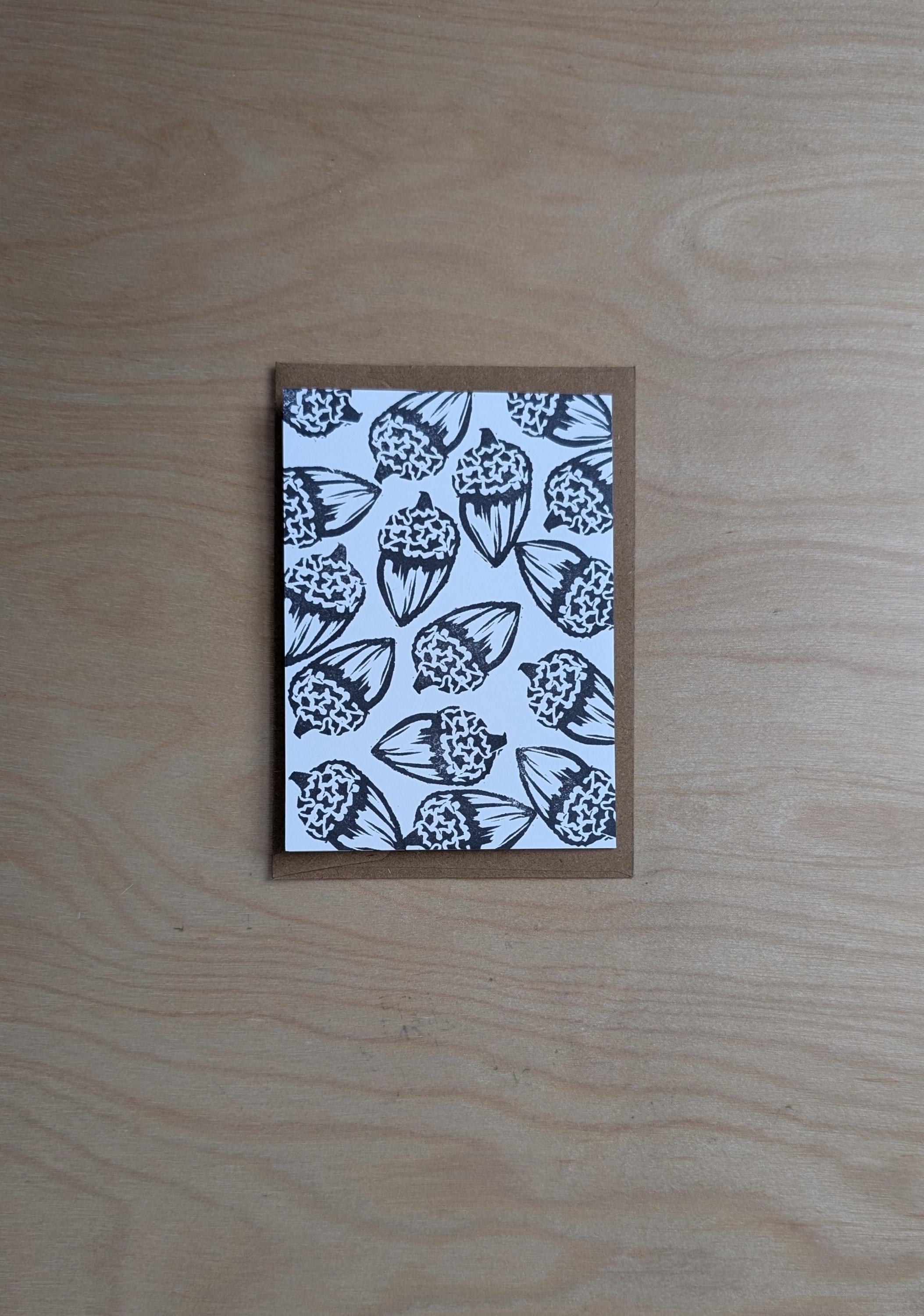 Send this to a friend or have it framed. This card was designed on a block and hand carved to make the pattern you see. Each print is made by applying ink to the block and applying it to this natural finish paper. Because of this, each print is slightly different in saturation.