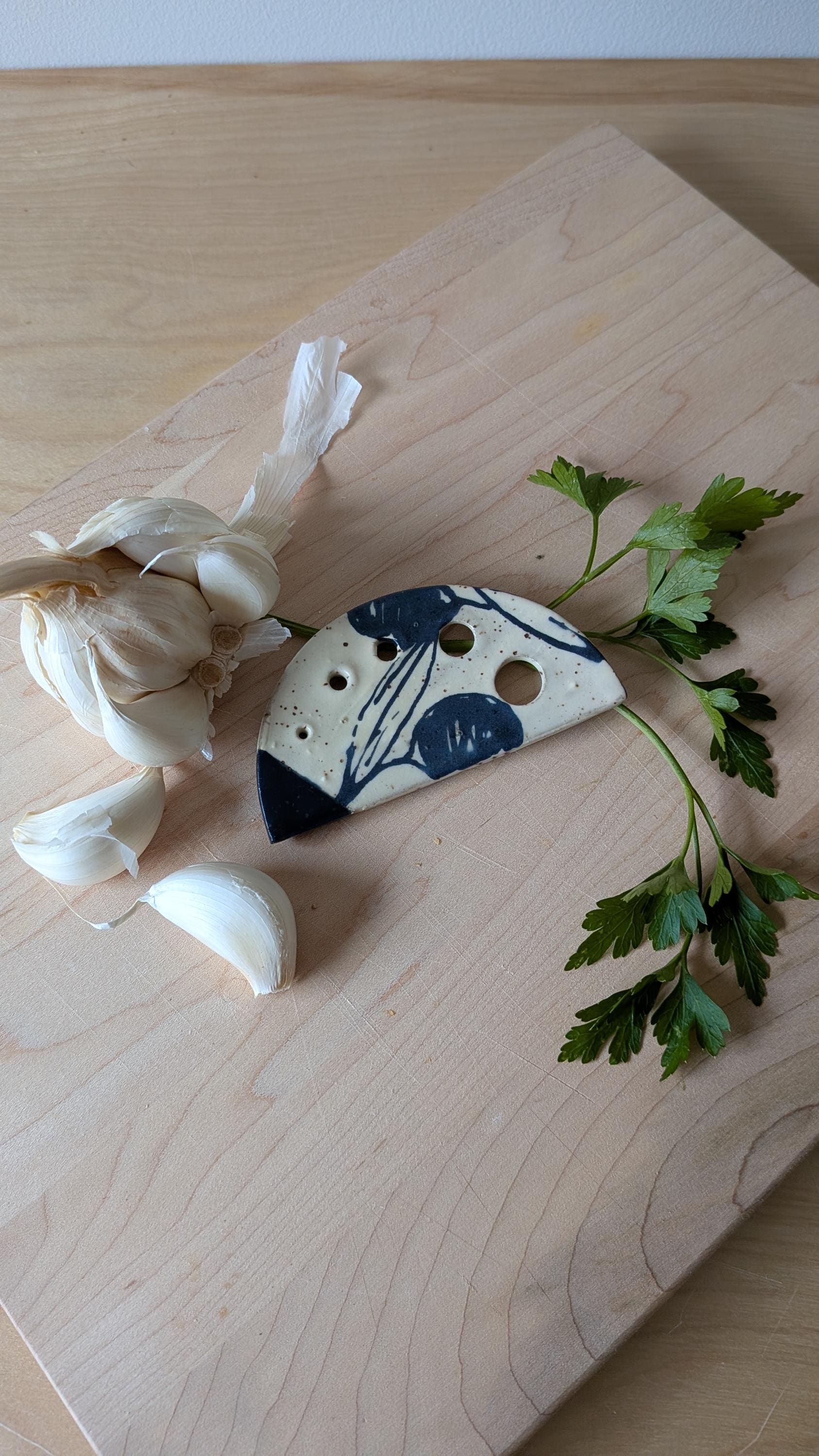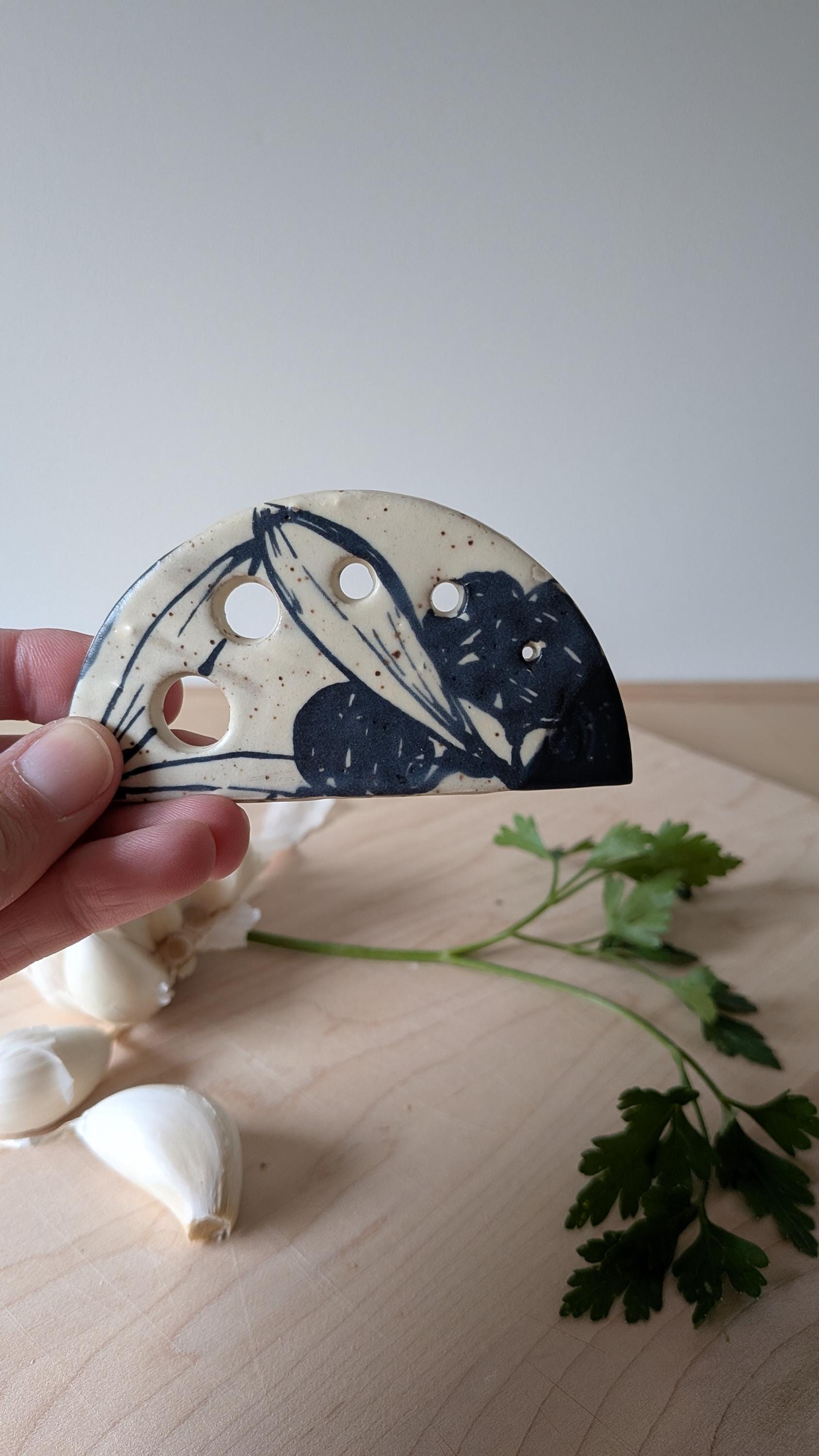 Freehand Drawn OIive Design Handmade Ceramic Herb Stripper *No two are the same*