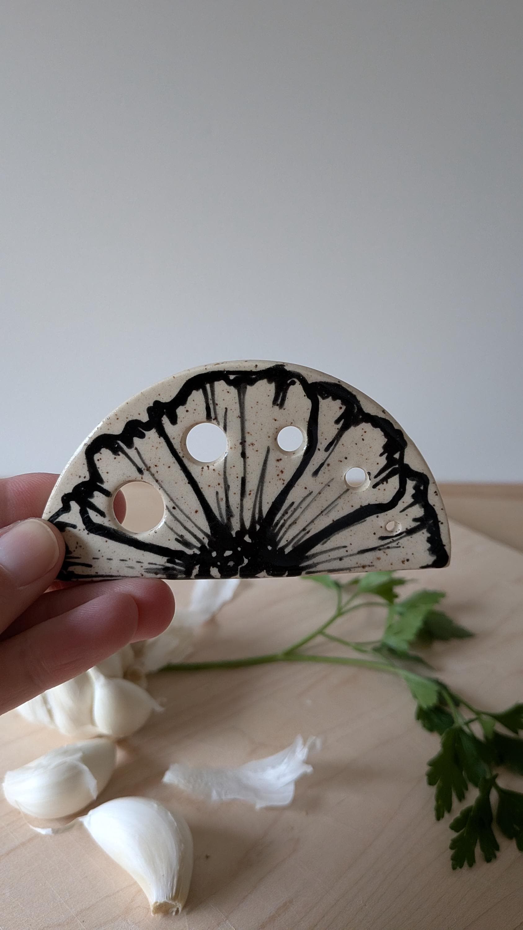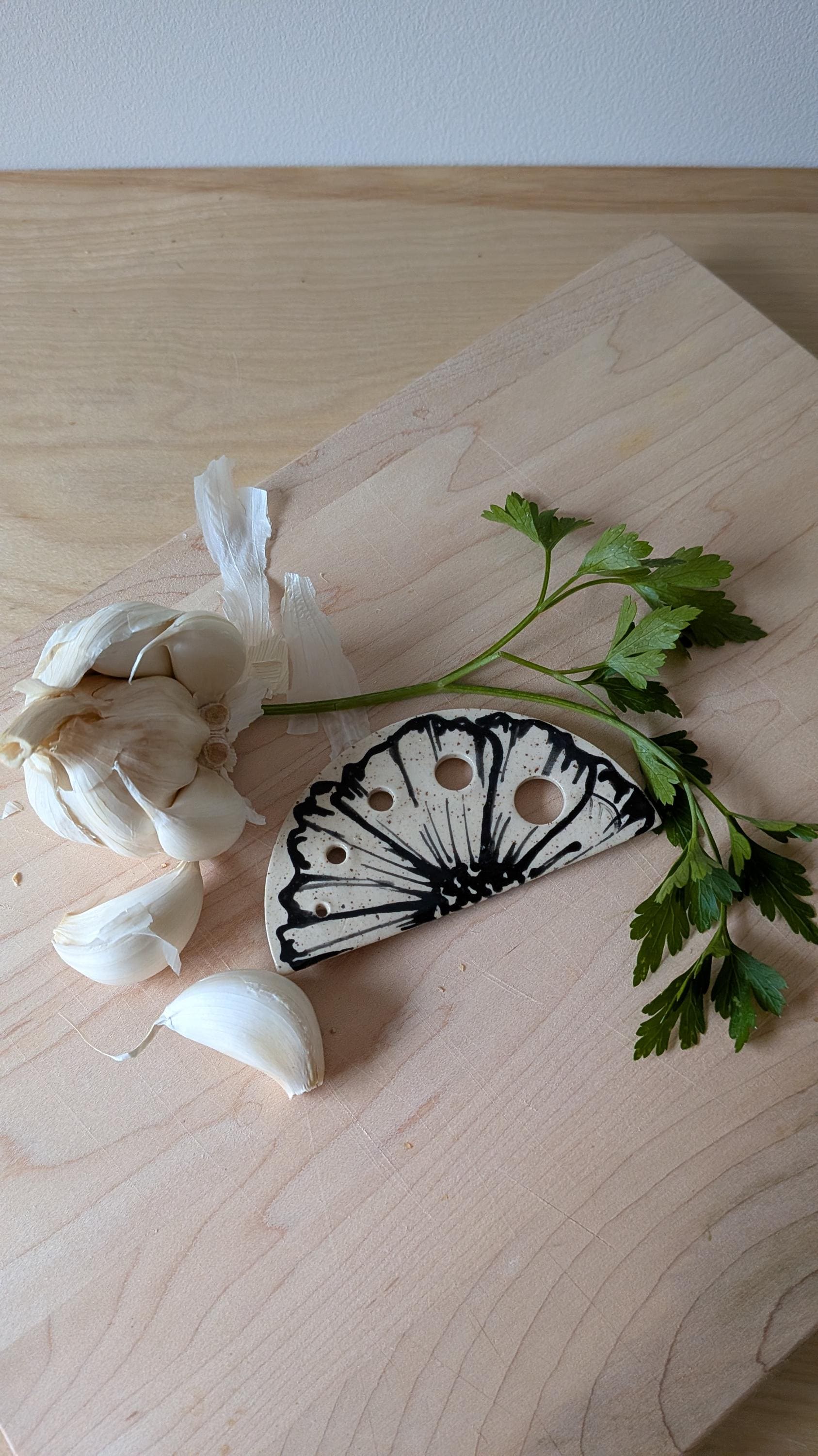 Freehand Drawn Floral Design Handmade Ceramic Herb Stripper *No two are the same*