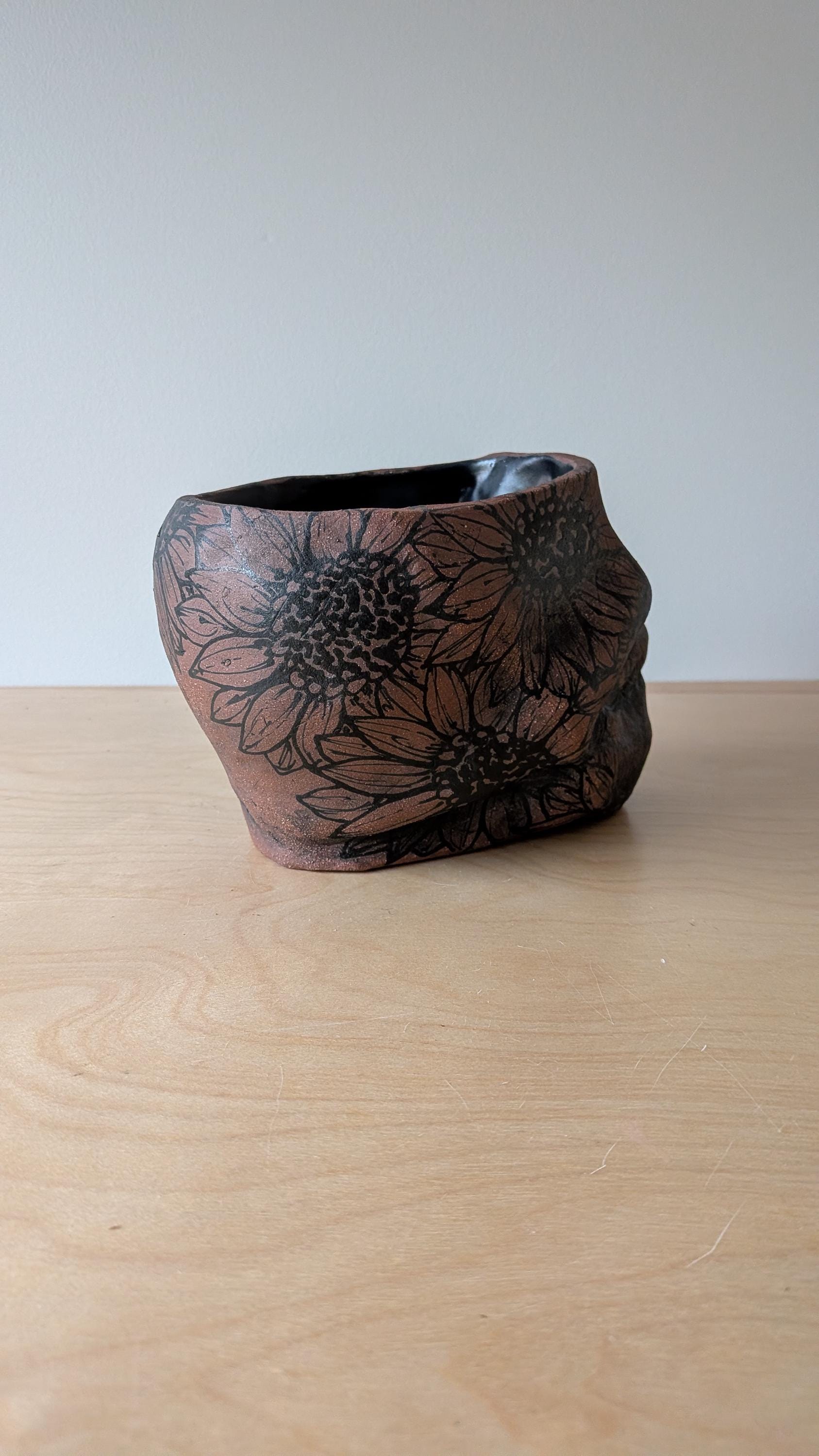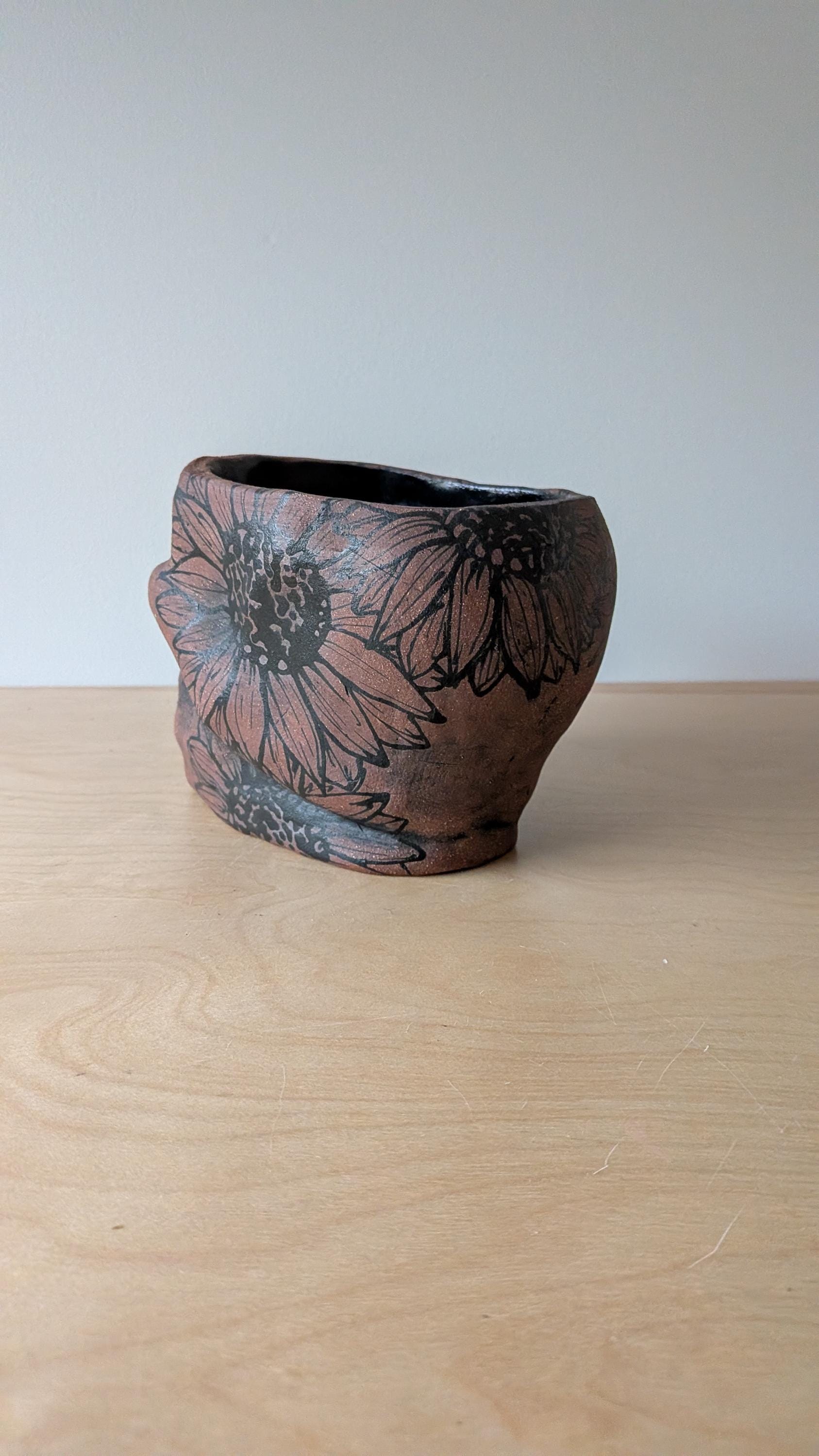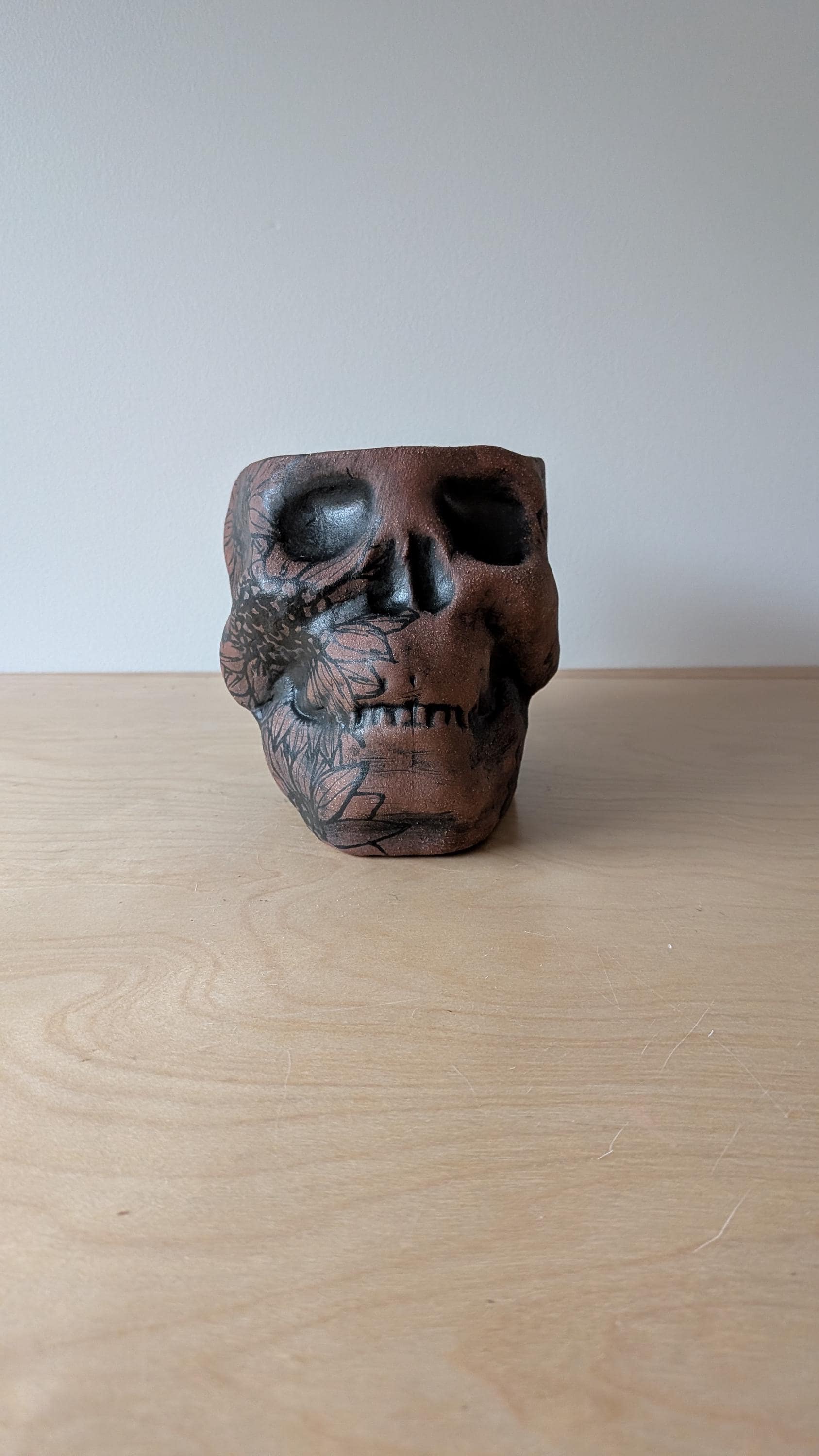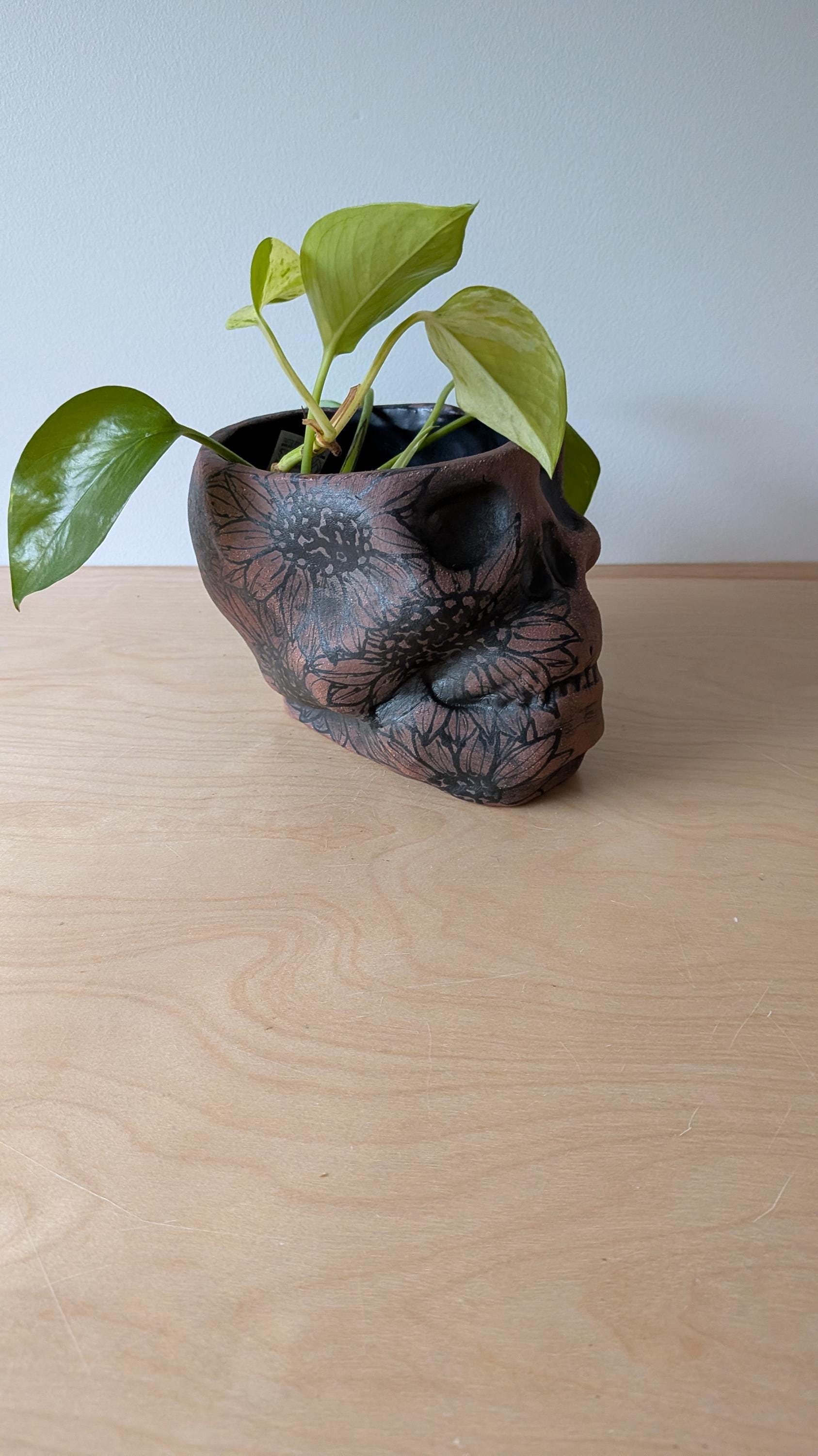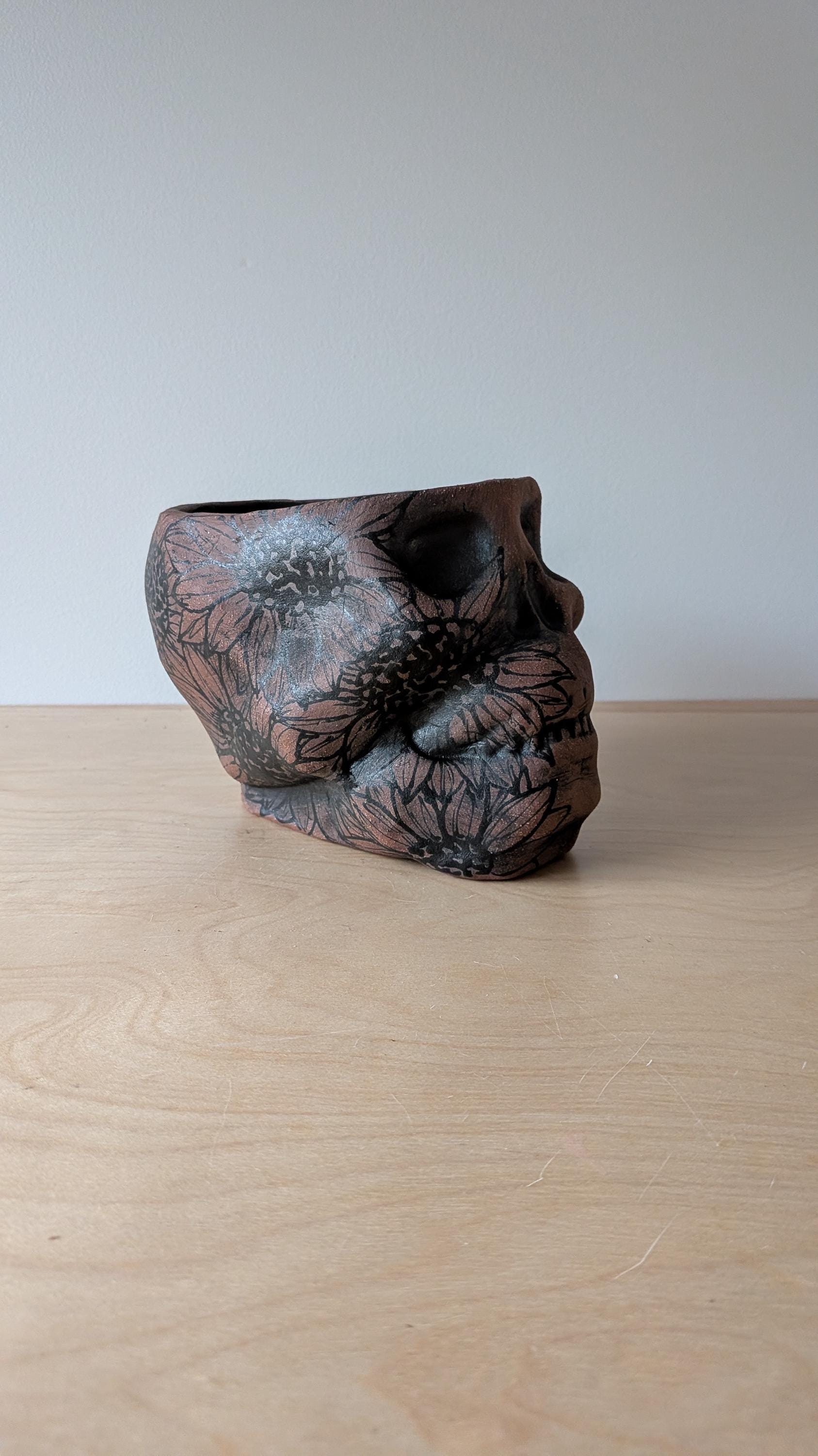Sometimes you need something just a little spooky. This vessel has no hole but would work and look great with a plant. The pieces is hand built out of a beautiful red brick clay. If you are anything like me then you want to see your house full of life, full of green.