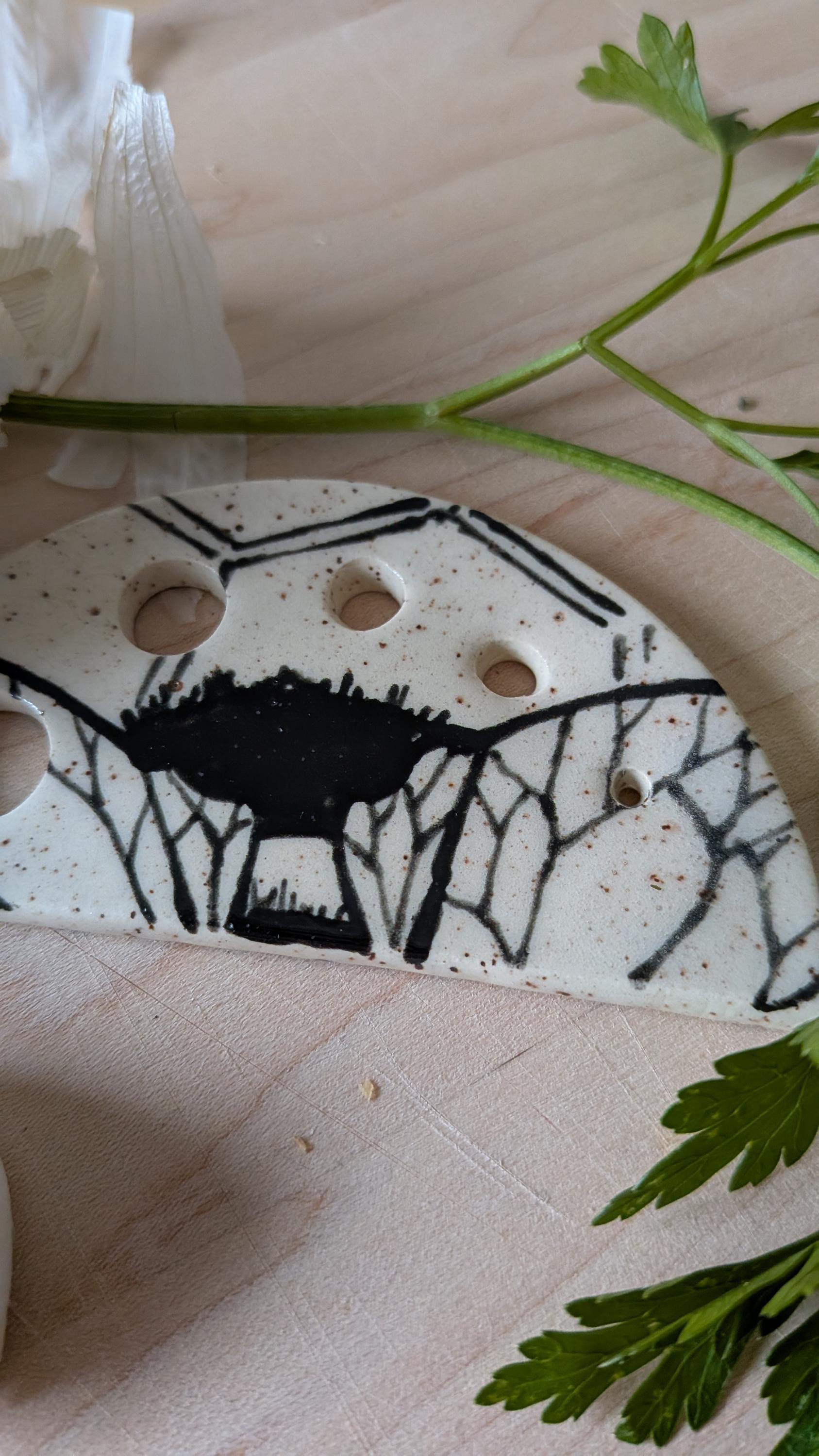 Freehand Drawn Bee Design Handmade Ceramic Herb Stripper *No two are the same*