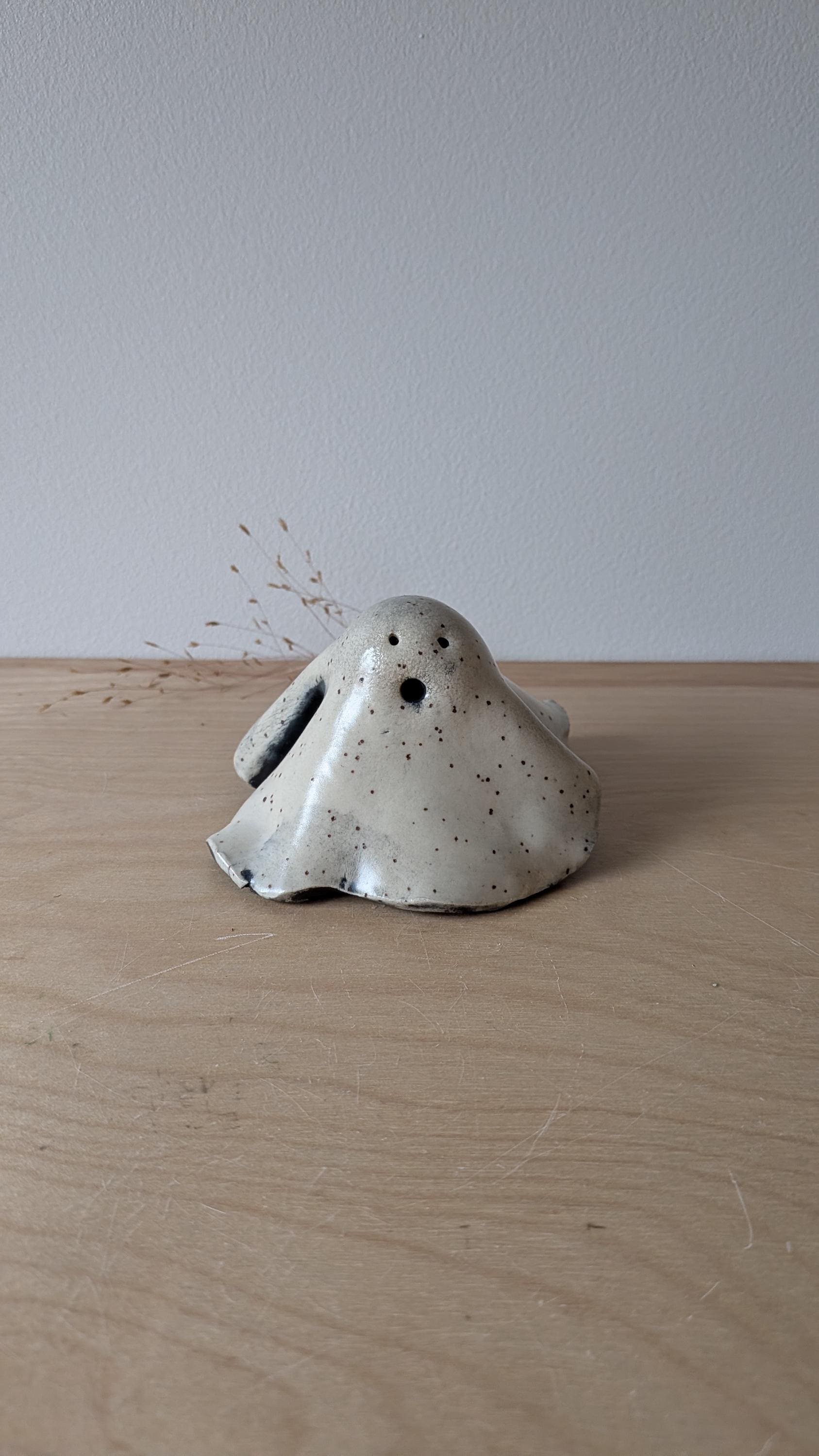 Halloween is such a fun time and decorating can be such a joy! These little ghost figurines are an off white, cream color gloss finish.