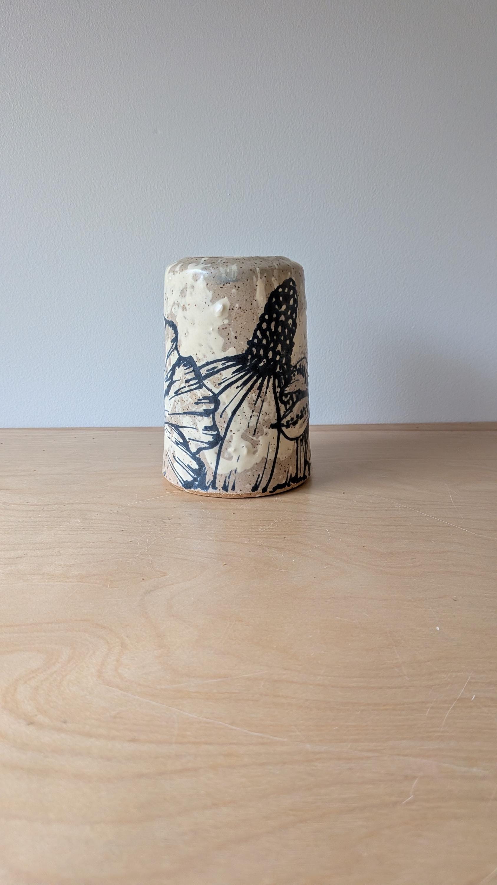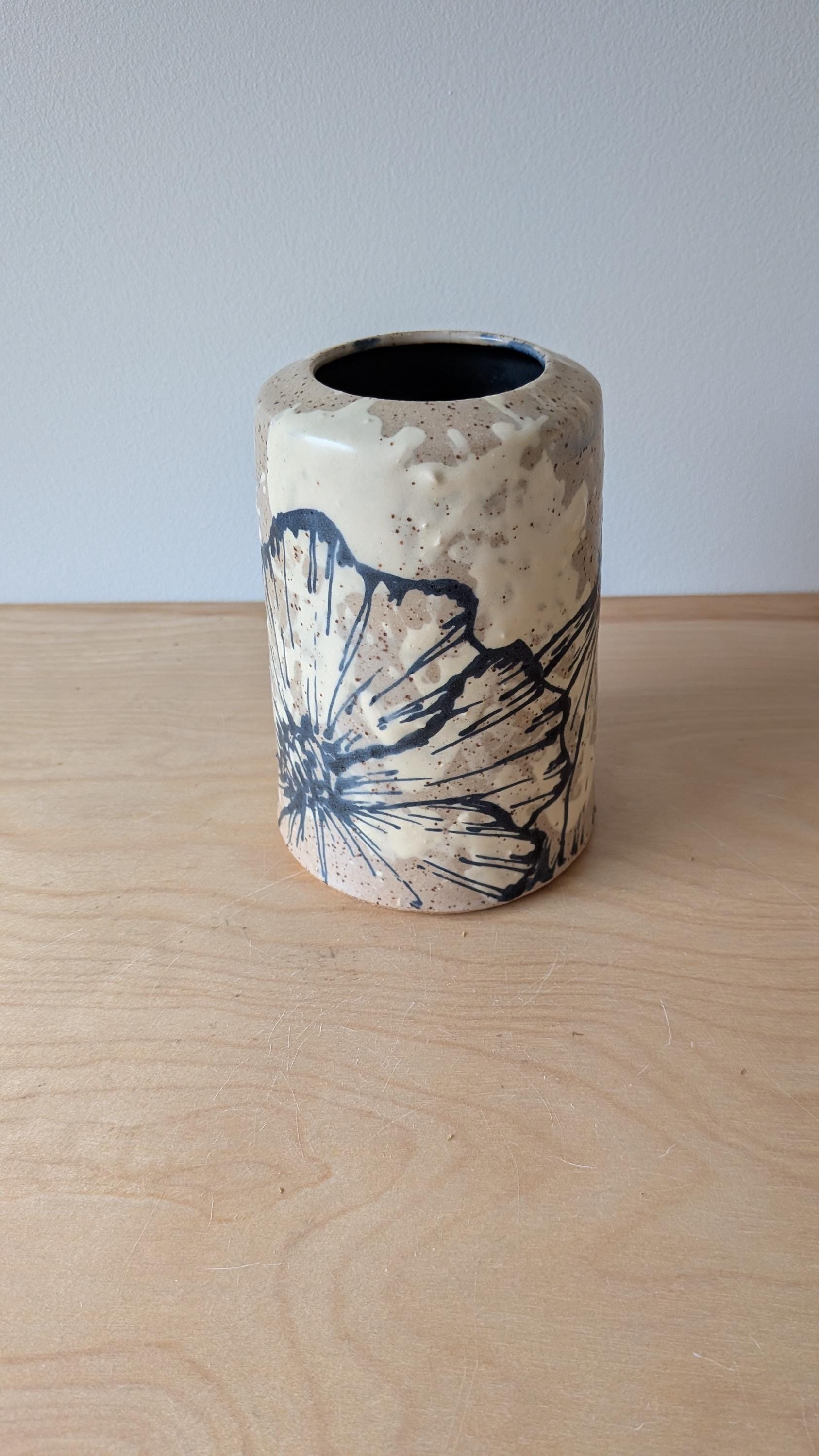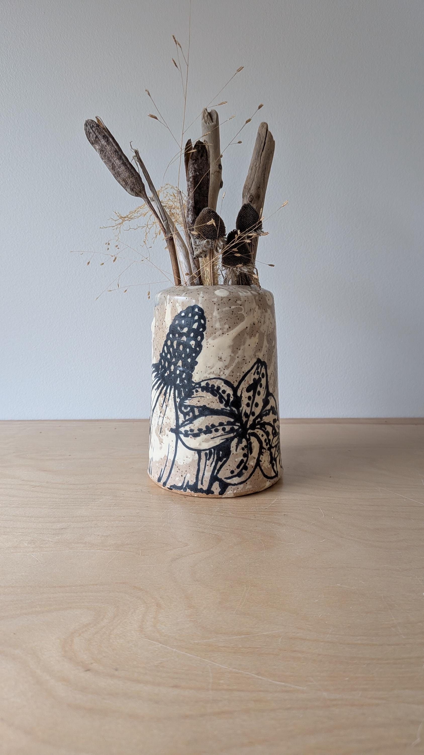 Freehand Drawn Handmade Ceramic Floral Vase