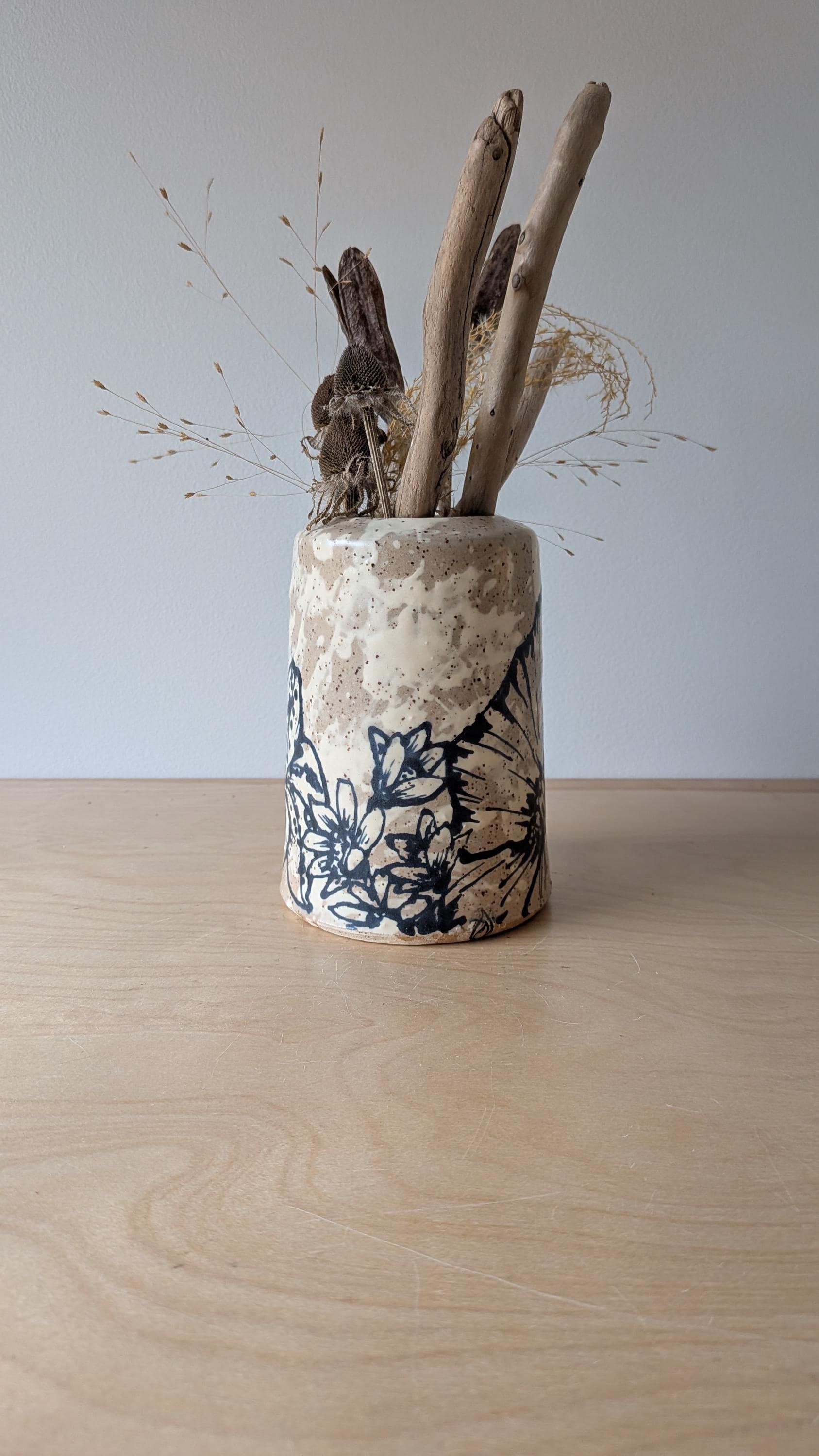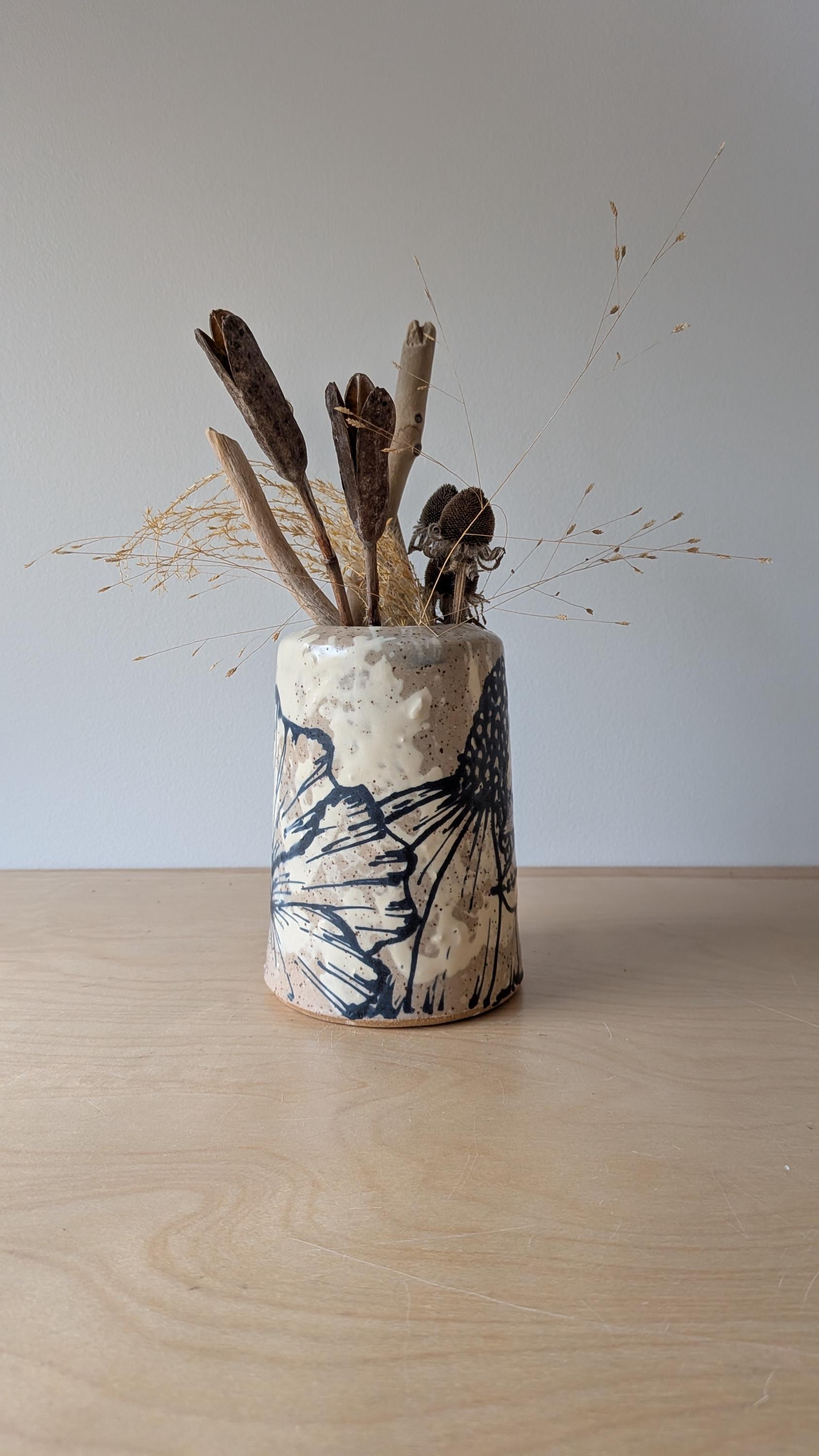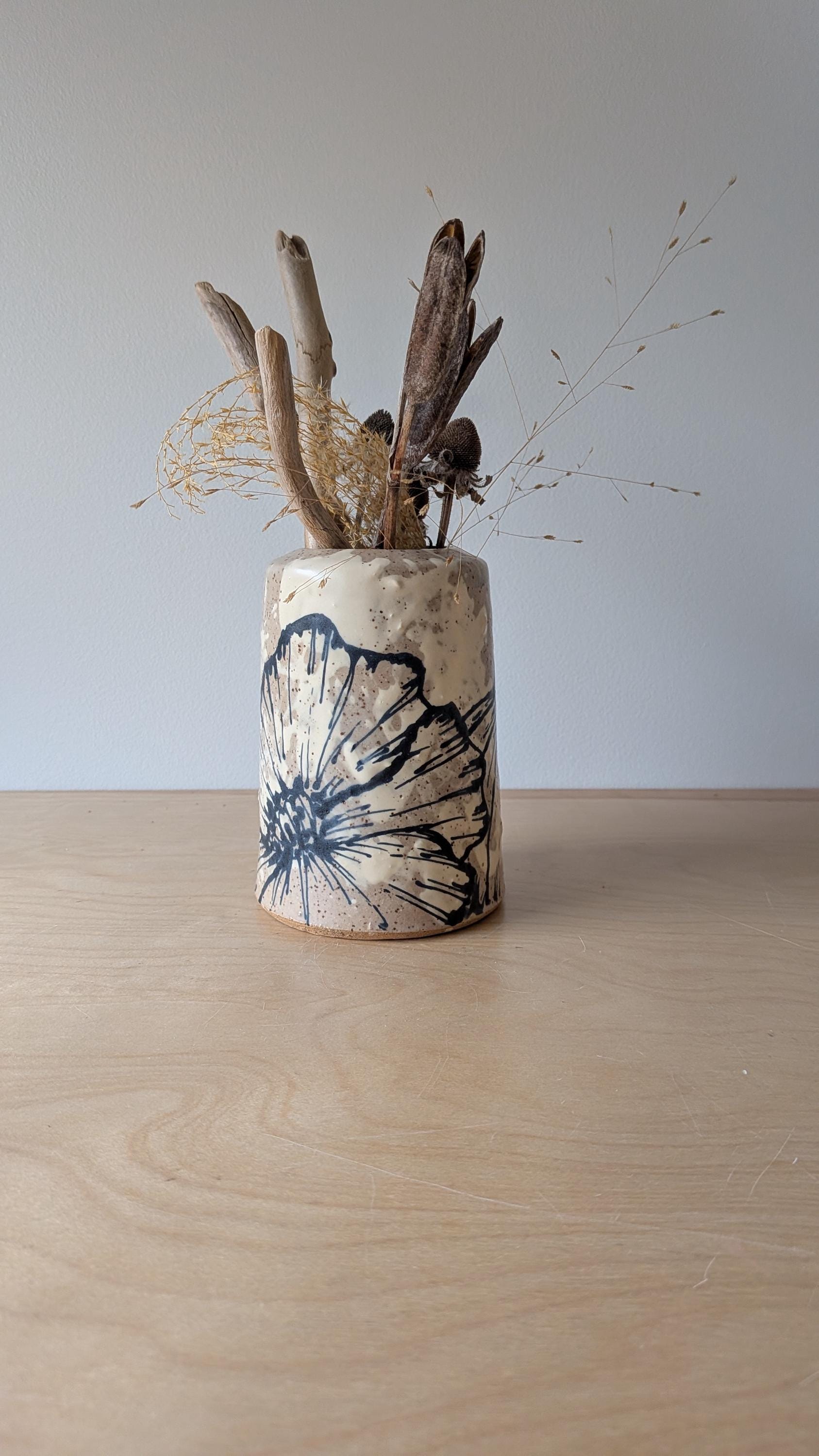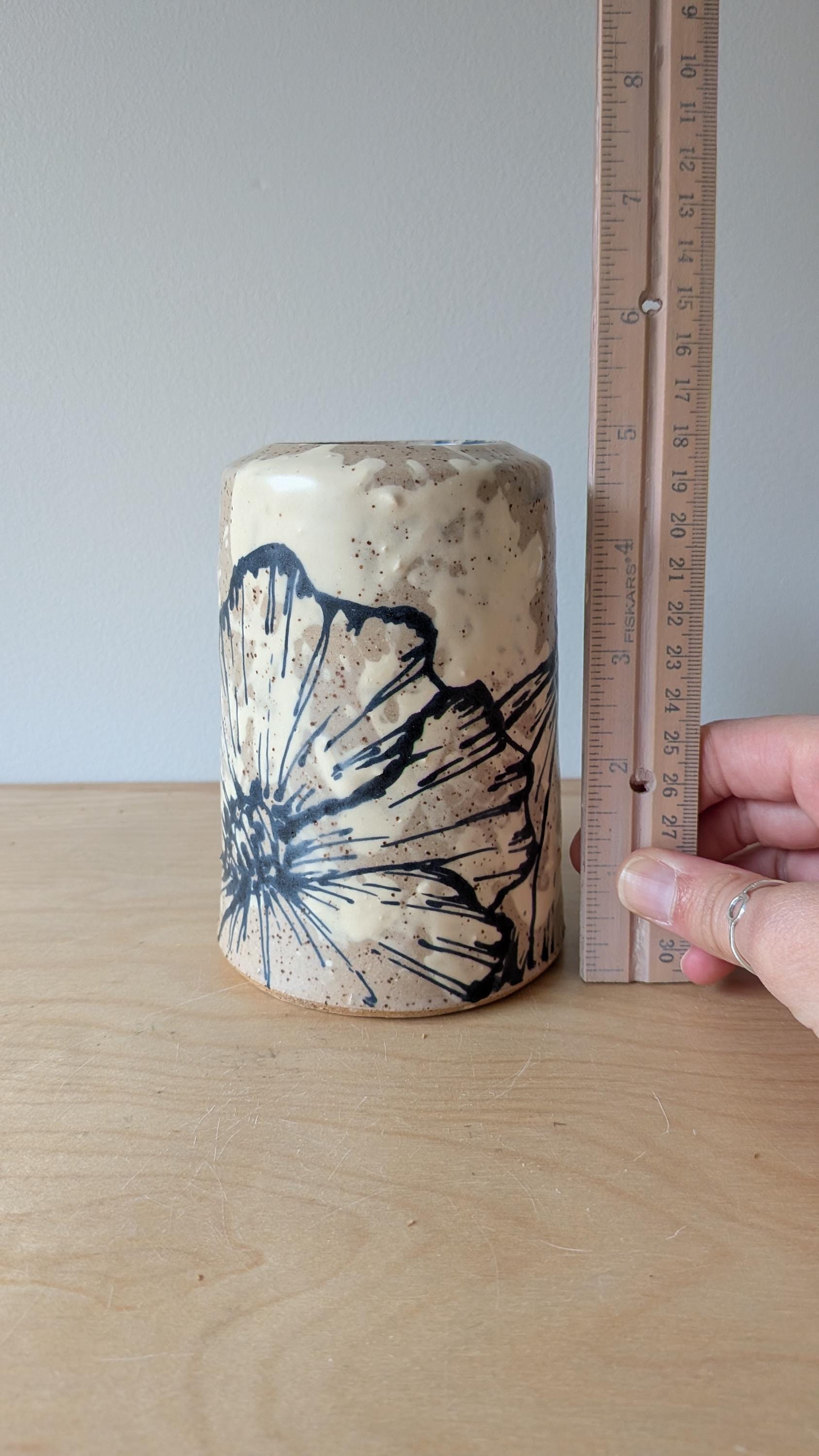Freehand Drawn Handmade Ceramic Floral Vase